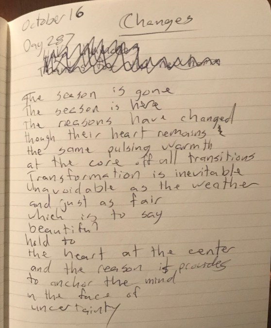 Change is inevitable and several are occurring right now in my life. All good to be sure. But change is not something we as human beings are particularly good at embracing, is it? Thinking on that this morning.