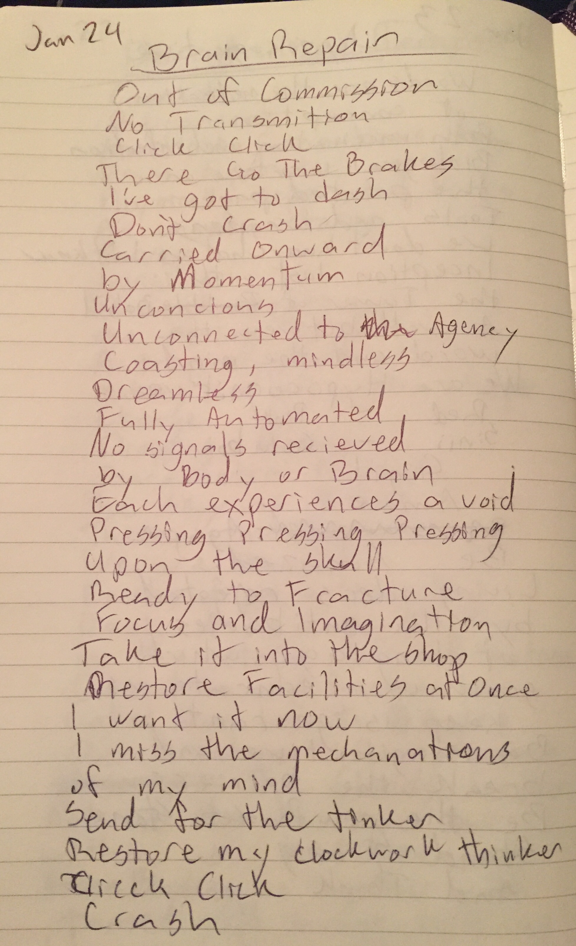 Realized this morning that I made a typo several weeks ago in my poetry journal with the result that all my days going forward from that typo have been mis-numbered. Oops.