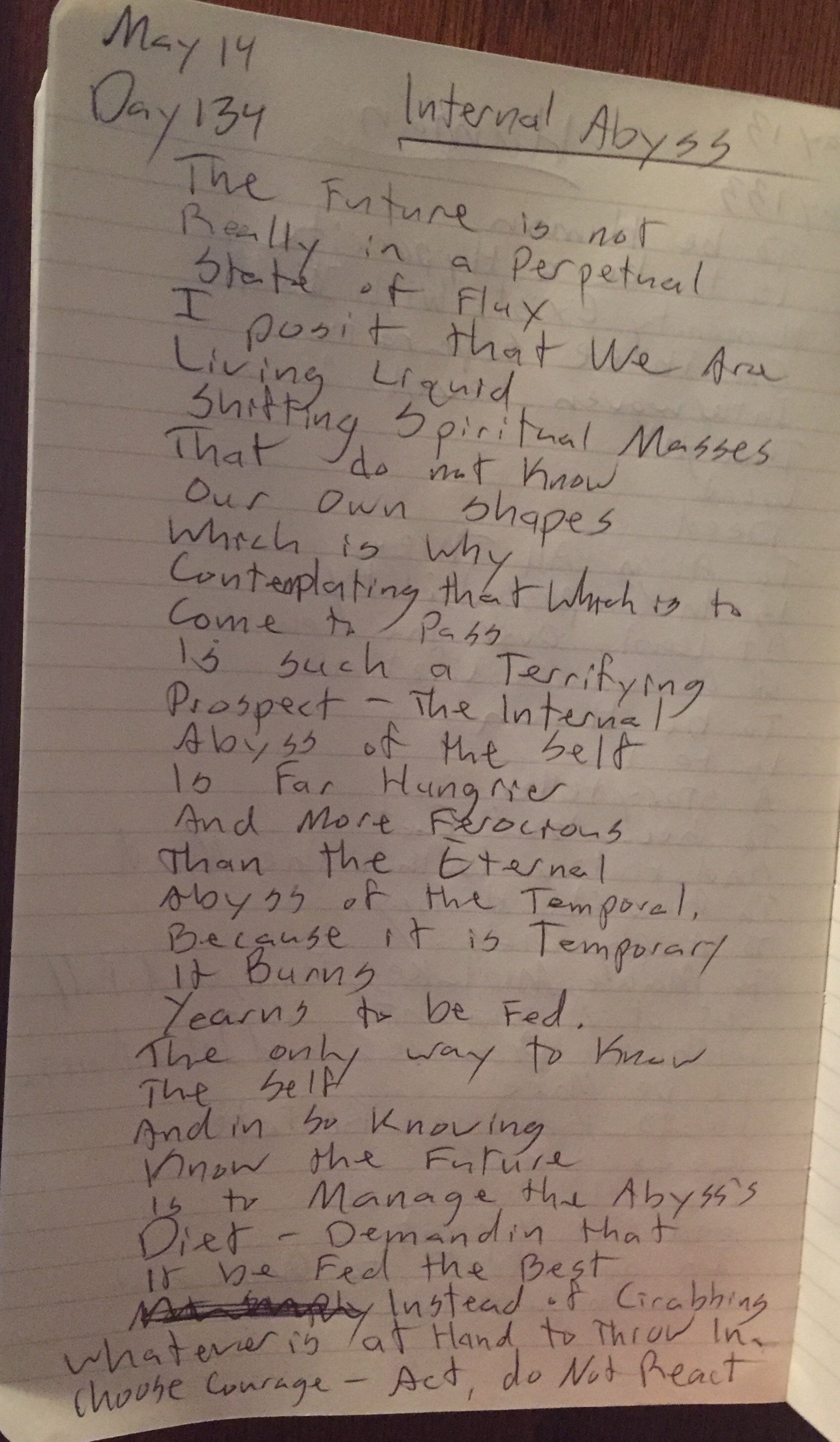 Confession. I hate yesterday’s poem. I’m sure I’m not alone as a poet who occasionally produces something he or she is unhappy with. I kept waiting for inspiration to strike me with something better and it never came. Lesson learned: push forward anyway. Momentum is more important than perfection. I’m beginning to suspect that I’m a rather dense student because this lesson seems somewhat familiar by this point.