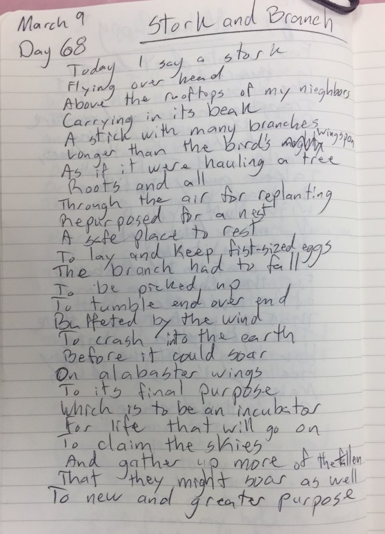Tagged Bird, Birds, building, Day Sixty Eight, Decisions, Dreams, Fall, Fallen, Flight, Fly, Goals, Home, Hope, Human Condition, Joy, Julian Kindred, Memory, motivation, Nature Themes, New Beginnings, Persistence, Poetry, purpose, Stories, Stork, Stork and Branch, The Everyday Poet, Wind Leave a comment