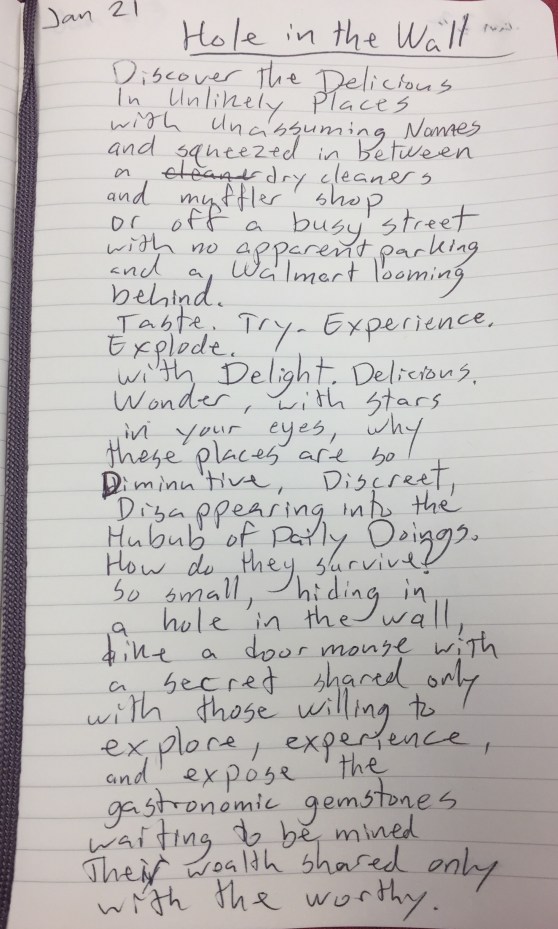 This successful discover comes right in the heels of another. It is our goal to discover all of the hidden gems near us and so far we’re on a roll! This poem is an ode to those small, out of the way restaurants that are beyond rewarding for those willing to give them a try.