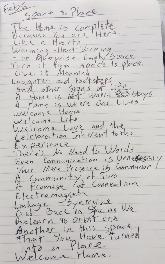 Step 3, which is really more like step 2.5, is that I’ll be using YOUR feedback via the newsletter, blog comments, and podcast feedback to determine a theme for March. I am loving the free form and it’s really helping me to expand, but I’d like now to start pushing myself and I think having a dedicated touchstone connecting the poems for a few weeks is an excellent way to do that. Fingers crossed.