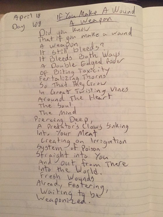 The titular line of this piece came to me years ago in a convoluted notion about how we weaponize our injuries. A conversation with a dear friend had me returning to the line and considering the deeper ramifications of it.