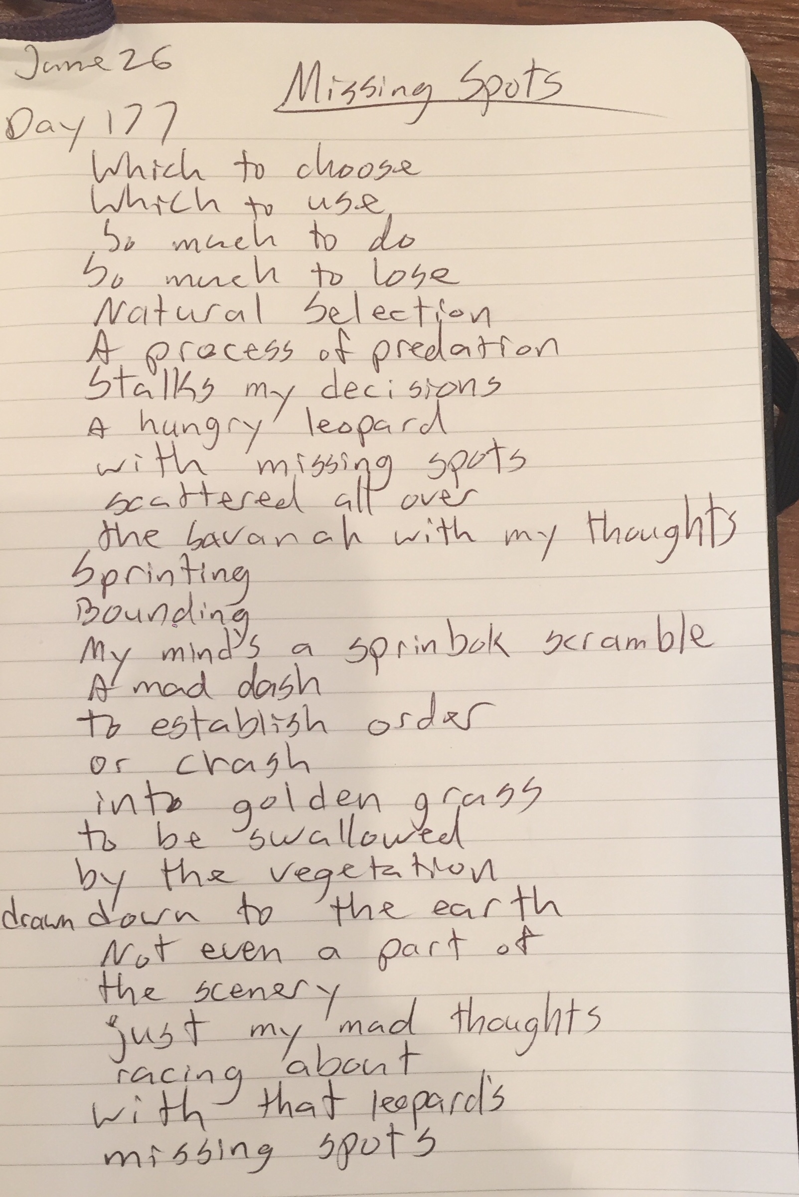 Once again inspiration struck when I didn’t have my notebook on me and I had to resort to writing yesterday’s poem on scrap paper. I transcribed it into my poetry notebook this morning before writing today’s poem.